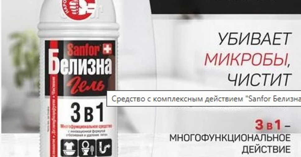 Средство чистящее Sanfor Белизна гель 3в1 прекрасно подойдет для прочистки труб, удаления ржавчины на поверхности унитаза, отбеливания белья и одежды, мытья и дезинфекции полов. Благодаря мощной инновационной формуле с хлором оно эффективно справляется с грязью, плесенью, известковым налетом, микробами и пятнами на тканях, а также устраняет неприятные запахи. Густая гелеобразная консистенция обеспечивает экономичный расход. Флакон имеет антискользящую поверхность, благодаря чему не выскользнет даже из мокрых рук.
