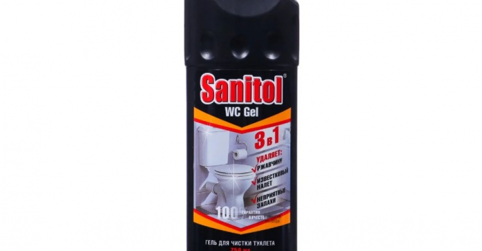 Состав: вода очищенная 30%, соляная кислота 5%, ортофосфорная кислота 5%, НПАВ 5%, метилгидроксиэтилцеллюлоза 5%, краситель 5%, отдушка 5%.